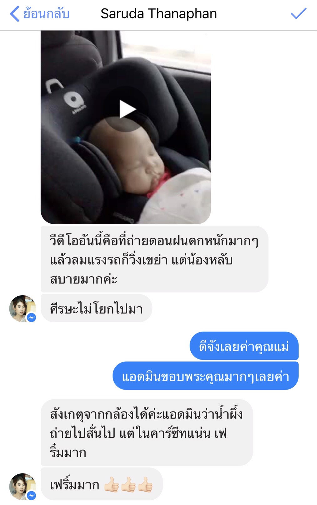 ที่ประทับใจอีกอย่างคือ แอดมินเพจ Apramo Thailand วันนั้นจะย้ายคาร์ซีทไปติดอีกคันแล้วถอดไม่ออก ส่งข้อความไปปรึกษาแอดมินแนะนำ ทำไม่ได้โทร.มาเลยค๊าาาา แนะนำดีมาก น่ารักมาก อุ่นใจ 10/10 หม่ามี๊ปลื้มมมม”