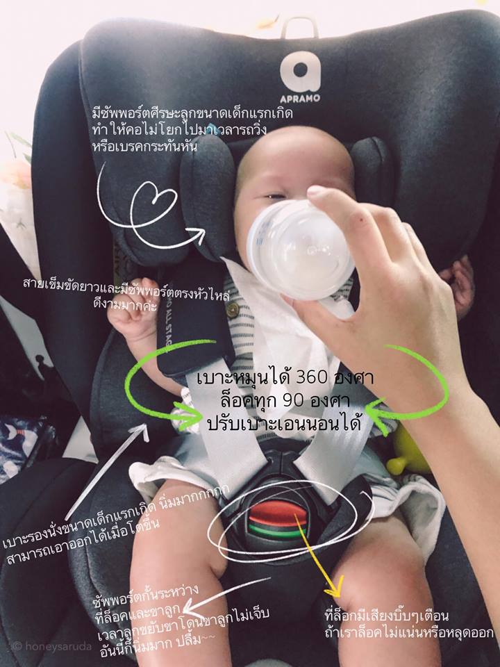 คุณแม่น้ำผึ้งเล่าว่า “ปลื้มปริ่มกับ carseat ใหม่ของยี่หวามากๆค่ะ 😍 Apramo รุ่น All Stage 360 fix ครั้งแรกที่ประเดิมใช้คือเมื่อต้นเดือนเมษาที่ผ่านมาพายี่หวาไปกราบคุณยายทวดที่สระแก้ว ขาไปเดินทางประมาณ 2ชั่วโมงครึ่ง หลับสนิทตลอดทางสำหรับการนั่งครั้งแรกหม่ามี๊ปลื้มมากค่าาาา