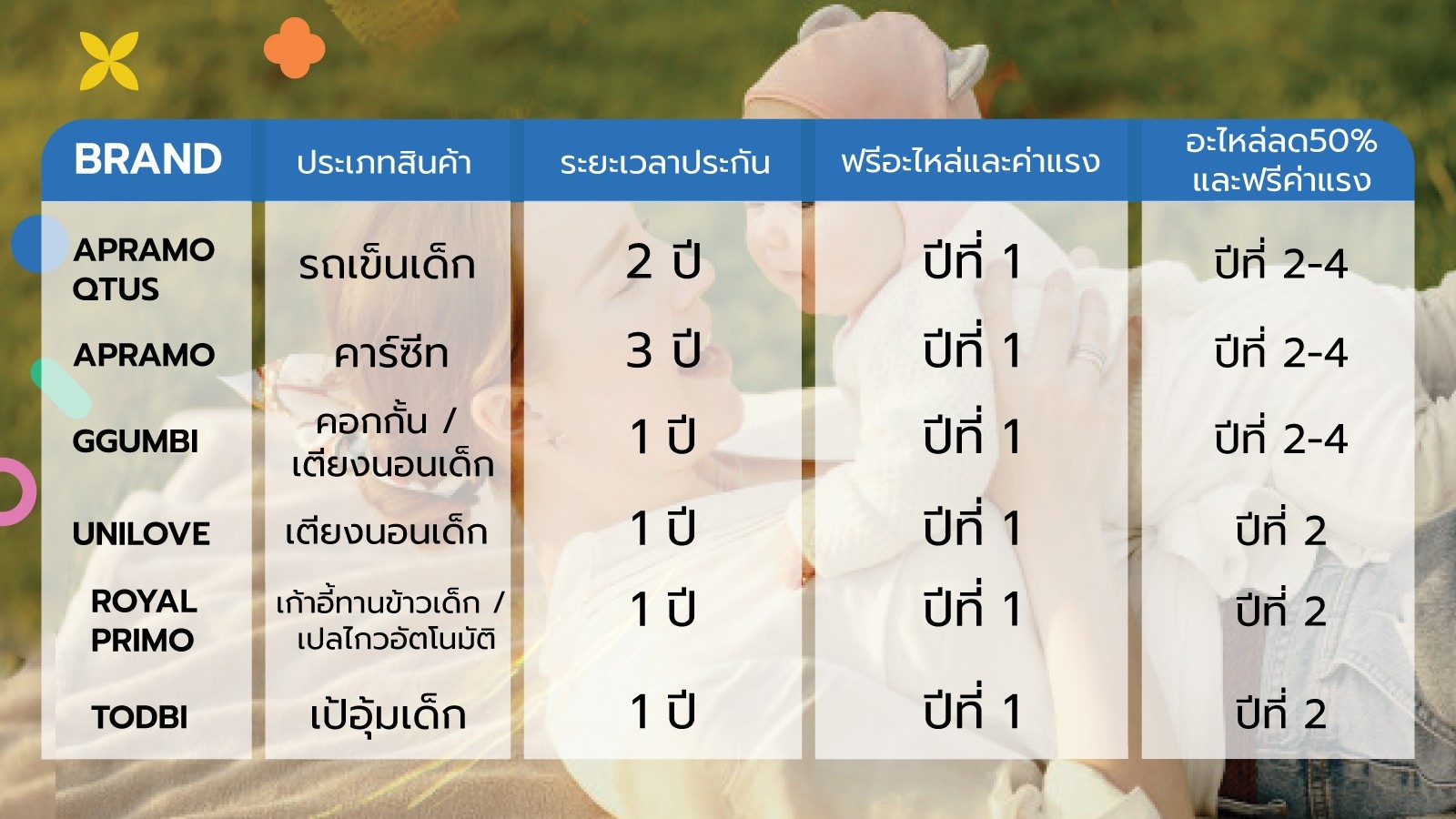 8. สำหรับสินค้าประเภทคาร์ซีท เก้าอี้ไฮแชร์ คอกกั้นเด็ก รถเข็นเด็ก และ Gadget หากเกิดการชำรุด เสียหาย หรือไม่สามารถเปิดใช้งานได้ตั้งแต่ได้รับสินค้า กรุณาแจ้งเจ้าหน้าที่ หรือบริษัทที่ซื้อ โดยทันทีที่พบ ภายใน 7 วันหลังจากได้รับสินค้า ทางบริษัทฯ จะทำการตรวจสอบก่อนส่งสินค้าใหม่ หรือซ่อมแซมตามเงื่อนไขการประกันของสินค้านั้นๆให้แก่ลูกค้า